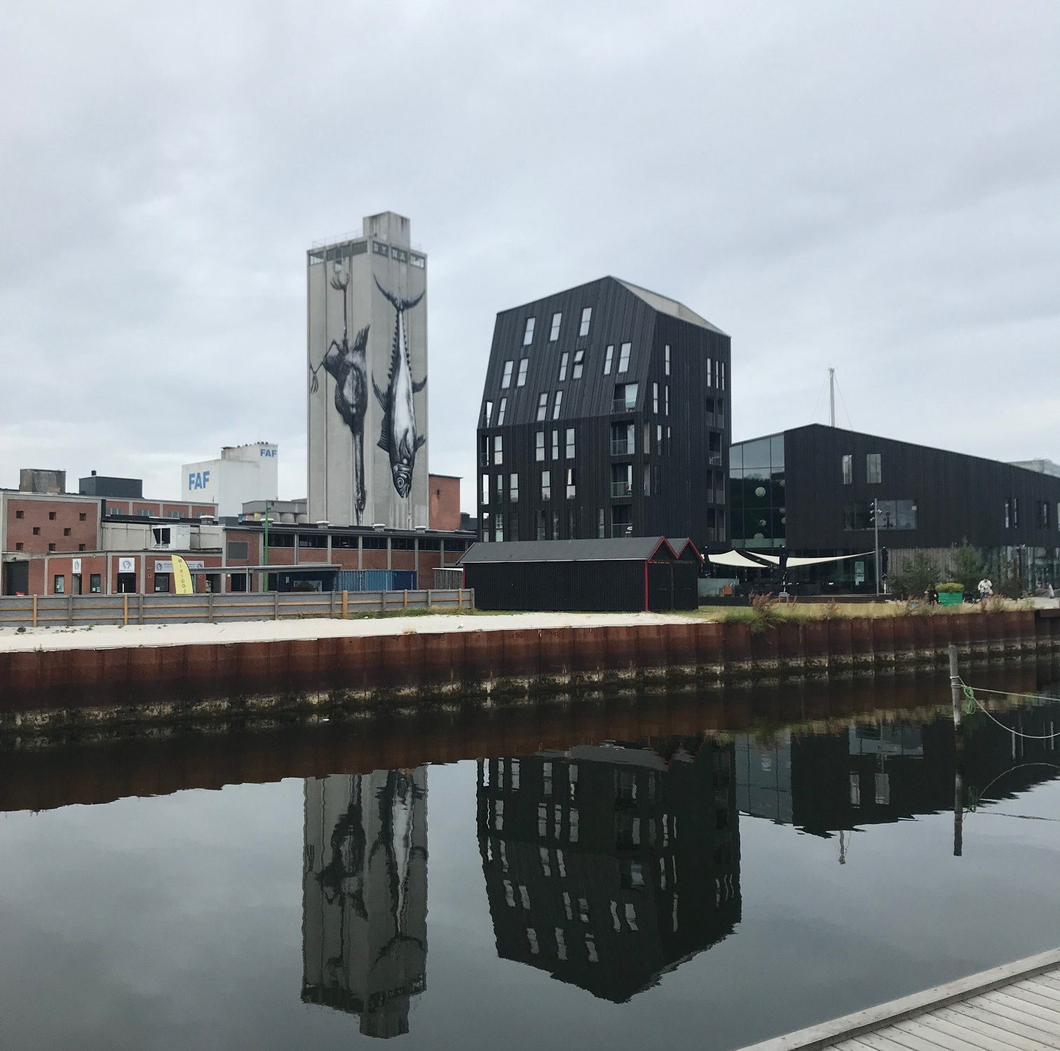 Als die Buben schliefen, konnten wir Staub wischen, packen und aufräumen. Am Morgen darauf liessen wir die Buben spielen und widmeten uns den Bädern, dem Treppenhaus, den Böden und den Kalkflecken in der Küche. Nach dem Mittagsschlaf machten wir uns auf zum Hafen von Odense, den wir bislang noch nicht gesehen hatten. Das gesamte Hafengebiet wird derzeit neu organisiert – es soll wohl eine etwas hippe Gegend werden mit schönen Wohnungen und coolen Locations. So sieht es zumindest aus. Es fühlt sich nur leider nicht wirklich so an.